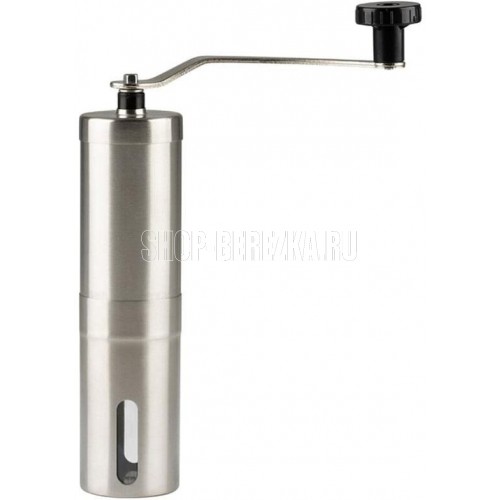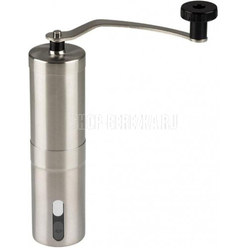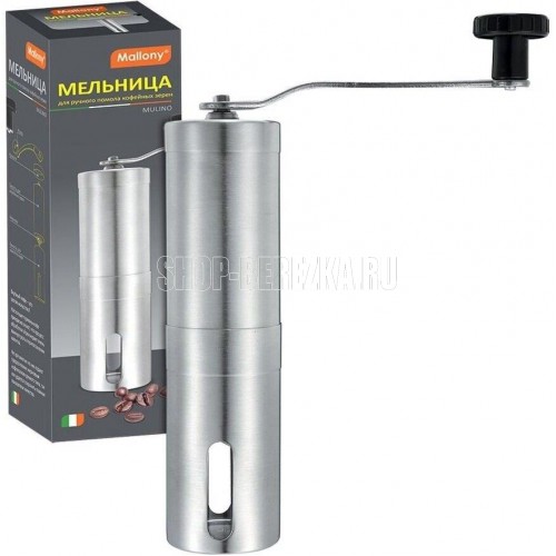 Мельница для ручного помола кофейных зерен, со съемной ручкой. серия Mulino, р-р 4,7*19 см, объем 95 мл/Толщина нерж стали — 0,4 мм. материалы — нерж ст 201/акрил/керамика, пластмасса, тм Mallony (корпус из нерж стали, жернова из грубой керамики). упаковка: пузырчатая пленка + цветная коробка. Не рекомендуется мыть в посудомоечной машине, чистить щеточкой. Регулировка степени помола.