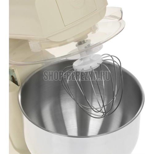 Планетарный миксер / Макс. мощность 1600 Вт / 6 скоростей + импульсный режим / Объем чаши 5 литров / Планетарное движение насадок / Скорость работы в основном режиме: 1 — 49 об/мин, 2 — 59 об/мин, 3 — 86 об/мин, 4 — 110 об/мин, 5 — 148 об/мин, 6 — 170 об/мин / Скорость работы в импульсном режиме 180 об/мин / Материал корпуса: Пластик / Материал чаши: Нержавеющая сталь / Материал крышки: Пластик / Материал насадок: Крюк для замешивания теста — металл, Насадка для смешивания — металл , Венчик для взбивания — нержавеющая сталь + пластик / Длина сетевого шнура: 1 м / Ножки-присоски / В комплекте: Металлический венчик для взбивания, Крюк для замешивания теста, Насадка для смешивания