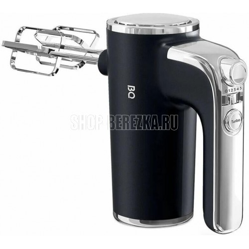 Миксер ручной, мощность 500 Ватт, 5 скоростных режимов, режим ТУРБО, скорость вращения до 1400 об/мин, защита от перегрузки, 2 венчика для взбивания, 2 крюка для замешивания теста, насадки из нержавеющей стали AISI 304, кнопка извлечения насадок, эргономичный дизайн, длина сетевого шнура 1 м, электропитание 220-240 В, 50 Гц