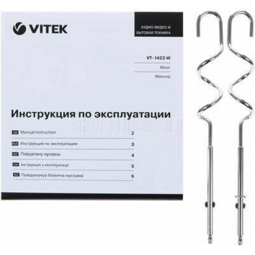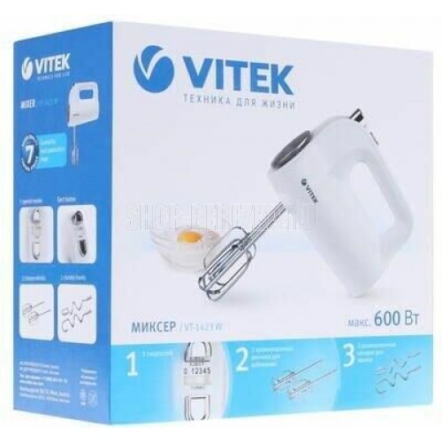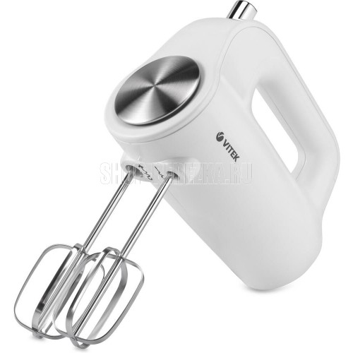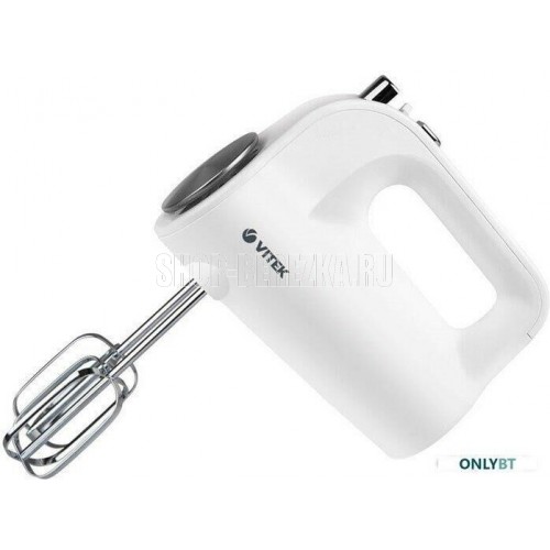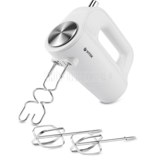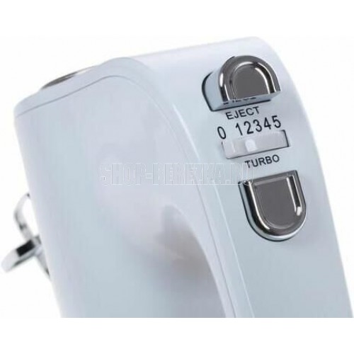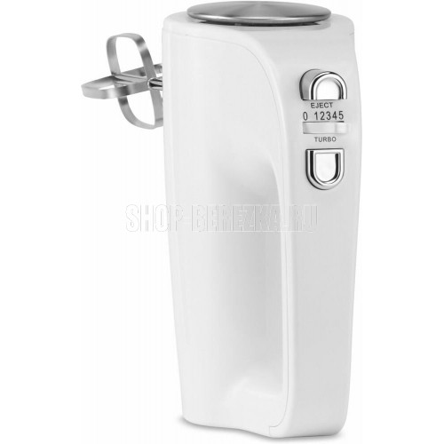 Миксер ручной. Мощность: 600 вт, Число скоростей: 5, Турборежим, Венчик для взбивания: 2, Крюки для замешивания теста, Количество насадок: 4, Кнопка отсоединения насадок, Материал корпуса: пластик, Длина сетевого шнура: 120 см, Цвет: Белый