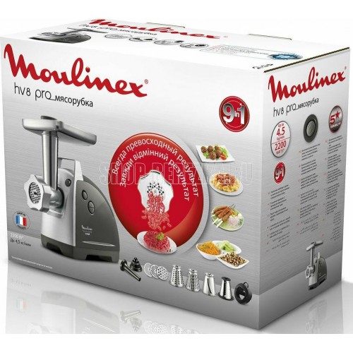 MOULINEX ME 688832 Мощность: номинальная 800Вт,максимальная 2200Вт,перерабатывает 4.5 кг/мин,3 диска для фарша 3мм, 4.7мм, 7.5мм,насадка-терка,насадка для шинковки,насадка для кеббе,терка для сыра,реверс.
