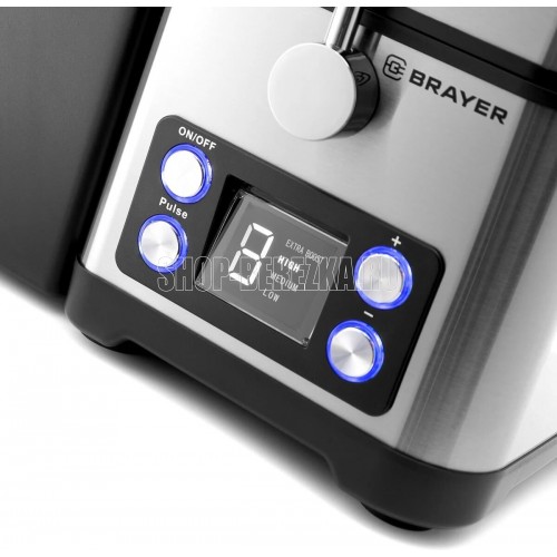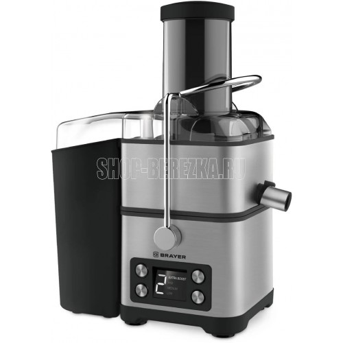 Центробежная соковыжималка Максимальная мощность 800 Вт LED-дисплей 4 скорости для мягких и твердых продуктов Импульсный режим Широкий желоб для целого плода 75 мм Корпус из нержавеющей стали Фильтр из нержавеющей стали Контейнер для мякоти объемом 2 л Контейнер для сока объемом 1,1 л Противокапельная система Прорезиненные ножки