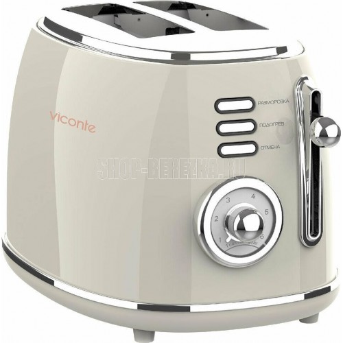 Тостер Viconte VC-414 950 W, Тостер, мощность 950 W, термоизолированный корпус; на 2 тоста, 6 степеней прожаривания, функция подогрева, функция разморозки, кнопка отмены, съёмный поддон для крошек, простота использования, подарочная упаковка.