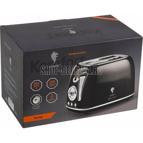 Серия RETRO Мощность: 685-815 Вт 2 широких слота для хлеба 120*120*38мм 6 степеней прожарки Автоматический подъем готового хлеба Поддон для крошек Функция центрирования Функция разморозки Функция разогрева Кнопка отмены выбранного режима LED подсветка кнопок Гарантия 2 года Цвет: чёрный