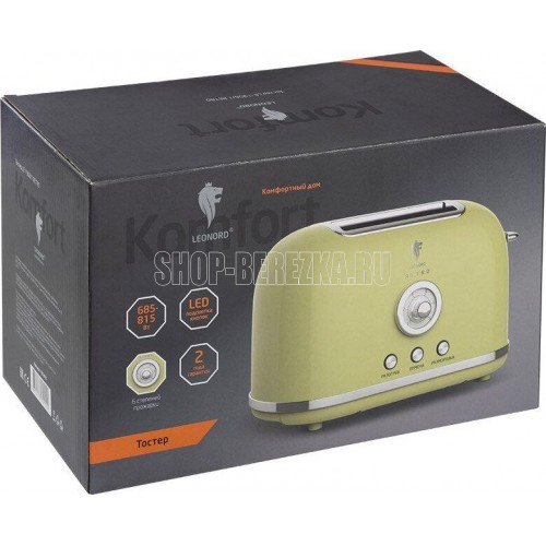 Мощность 685-815 Вт 2 широких слота для хлеба 120*120*38мм 6 степеней прожарки Автоматический подъем готового хлеба Поддон для крошек Функция центрирования Функция разморозки Функция разогрева Кнопка отмены выбранного режима LED подсветка кнопок Длина шнура 78 см Гарантия 2 года