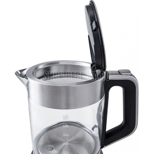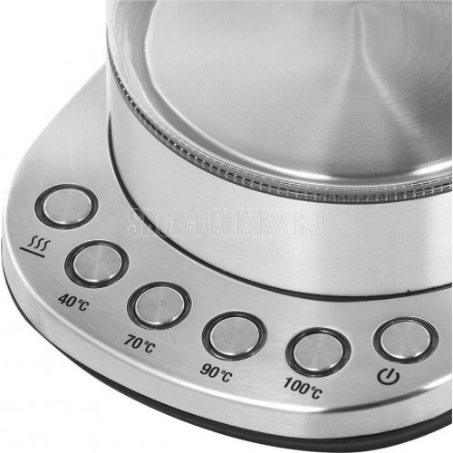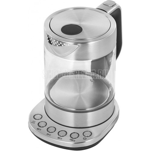 Мощность 2200 Вт. Максимальный объем 1.5 л. Нагревательный элемент скрытый. Индикатор включения есть. Индикатор уровня воды есть. Автоматическое отключение есть. Регулировка температуры нагрева есть. Температурные режимы 4 шт. Звуковой сигнал при закипании есть. Материал корпуса нержавеющая сталь/стекло. Цвет серебристый.