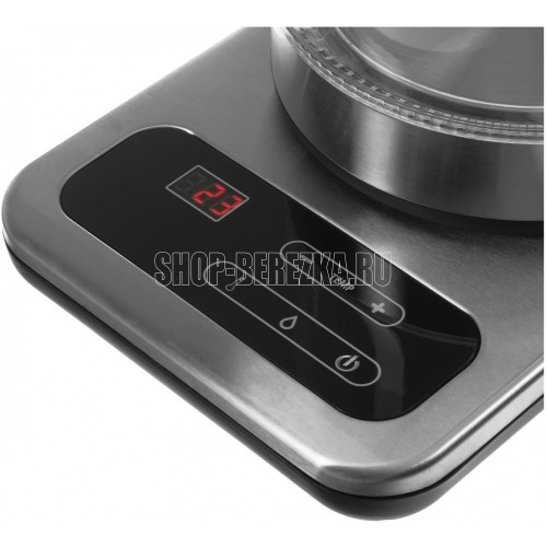 SAKURA SA-2724DBK 1,7 л, 1850-2200 Вт, стеклянный корпус, диск, 7 температурных режимов (40, 50, 60, 70, 80, 90, 100С), поддержание температуры, сенсорное управление, LED дисплей, функция дехлорирования, отключение при закипании и включении без воды
