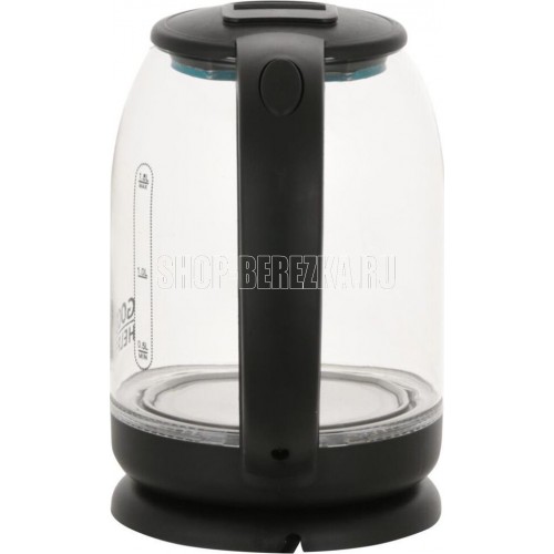 Объем 1.8л, Мощность 1500Вт, Автовыключение при закипании, Защита от включения без воды, Защита от перегрева, Поворачивающийся корпус (360°), Дисковый нагревательный элемент, Индикация включения, Светодиодная подсветка, Стеклянный корпус, Ручка и крышка ABS-пластик, Рабочее напряжение 220В / 50Гц.