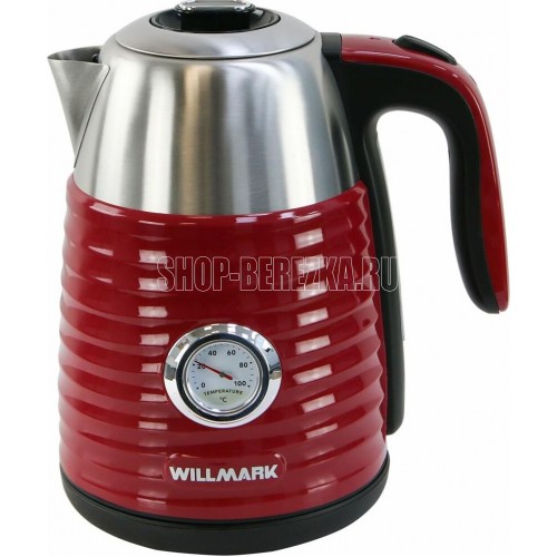 Чайник WILLMARK WEK-1738PST современный чайник с удобной ручкой, мощностью 2200Вт, объёмом 1,7 литра,с закрытым нагревательным элементом из нержавеющей стали. Удобен в эксплуатации, позволяет легко контролировать температуру воды благодаря встроенному термометру. Чайник электрический WEK-1738PST имеет двухстенную конструкцию, в которая наружняя часть выполнена из экологически безопасного пищевого пластика, внутренняя — из нержавеющей стали. Благодаря такой конструкции наружная поверхность чайника не нагревается, а при нагреве воды существенно снижается уровень шума и срок закипания. Технология термоса с двумя стенками позволит воде дольше оставаться горячей и снизит затраты на электроэнергию.