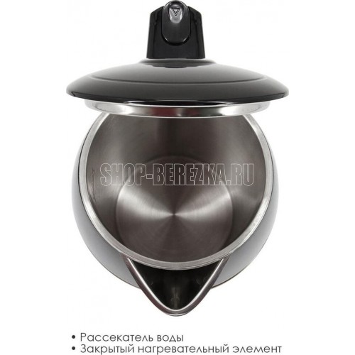 Металлический корпус с двойными стенками Высокий уровень термоизоляции Объем 1,8 литра Поворот на подставке на 360° Быстрое закипание Закрытый нагревательный элемент Автоматическое отключение Защита от перегрева без воды Электрошнур в цокольной подставке, 60 см Номинальная мощность 1800 Вт 230 B ~ 50 Гц