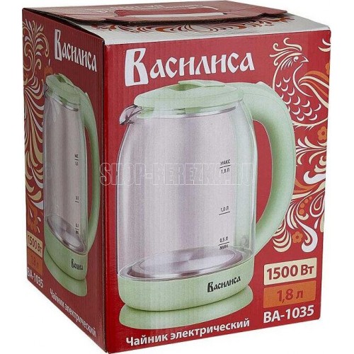 Параметры Объем 1,8 л Номинальная потребляемая мощность 1500 Вт Описание Чайник электрический предназначен для нагрева воды в бытовых и аналогичных условиях Корпус из высококачественного термостойкого стекла Закрытый нагревательный элемент из нержавеющей стали Вращение корпуса на 360° Цвет: зеленый Шкала уровня воды Внутренняя LED-подсветка Отсек для хранения шнура питания Автоматическое отключение при закипании Блокировка включения без воды Упаковка: цветная коробка