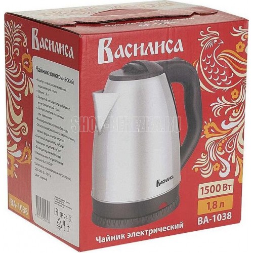 Параметры Объем 1,8 л Номинальная потребляемая мощность 1500 Вт Описание Чайник электрический предназначен для нагрева воды в бытовых и аналогичных условиях Корпус из высококачественной нержавеющей стали Вращение корпуса на 360° Закрытый нагревательный элемент из нержавеющей стали Световой индикатор работы Отметка максимального и минимального уровня воды внутри корпуса Отсек для хранения шнура Быстрое закипание Автоматическое отключение при закипании Блокировка включения без воды Цвет: черный Упаковка: цветная коробка