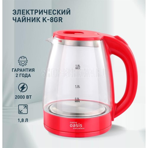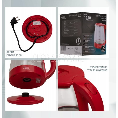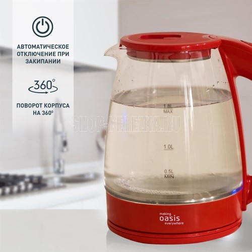 Объем 1,8 литра Корпус из термостойкого стекла Мощность 2000 Вт Автоотключение Защита от включения без воды 360° поворот корпуса Световая индикация Цвет Красный Материал полости Термостойкое стекло Параметры электросети, В/Гц 220/50 Мощность, Вт 2000 Объем, л 1,8