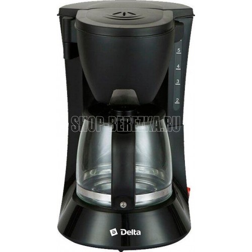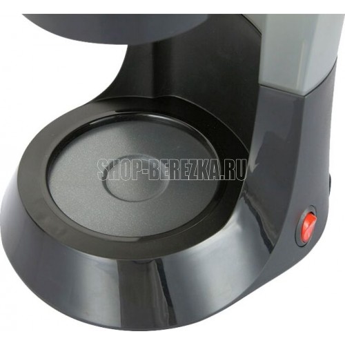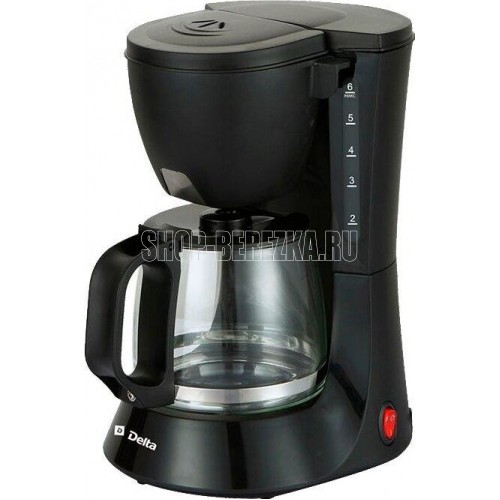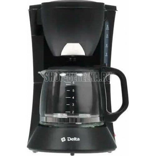 Мощность 600Вт. Вместимость 6 чашек (0,6л). Корпус из высококач. пластика. Стекл. резервуар д/кофе. Система поддержания температуры. Функция Антикапля. Защита от перегрева. Съемный многоразовый фильтр. Цвет: черный.