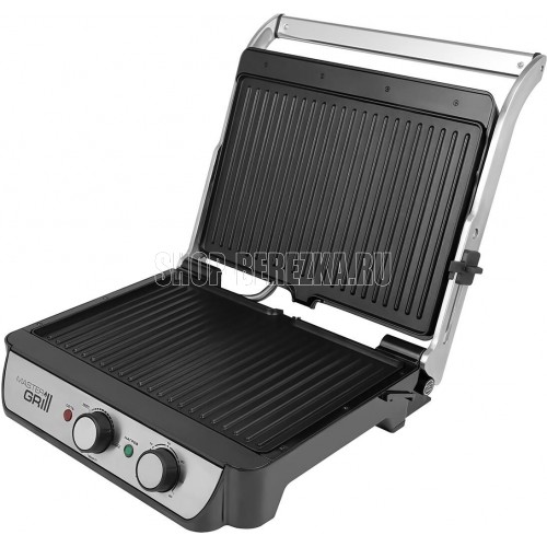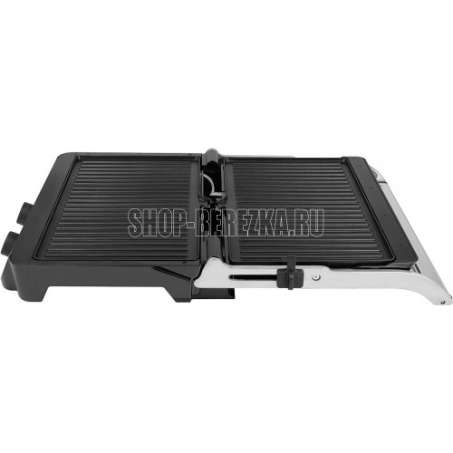 Мощность 2000 Вт. Антипригарное покрытие. Поддон для сбора масла. Открытие пластин180 градусов. LED-индикаторы. 2 рабочие пластины. Быстрый нагревдо 240 градусов. Большая жаровня 340х230 мм. Отделка корпуса нержавеющей высококачественной сталью.