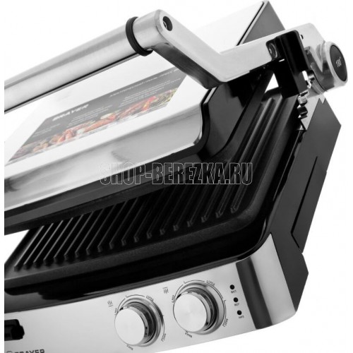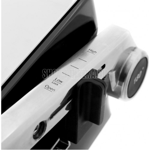 Мощность 2000 Вт • Съёмные моющиеся пластины с антипригарным покрытием • Размер пластин: 29*23 см • Максимальная температура 240° • Регулировка расстояния между пластинами по высоте продукта • Корпус из высокопрочного пластика, декорирован нержавеющей сталью • Вертикальное хранение для компактного размещения на кухне • Открытие крышки на 180° • Поддон для сбора жира • Защита от перегрева • Электропитание 220-240 В, 50-60 Гц