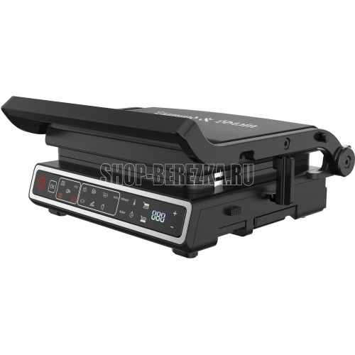 Контактный гриль Мощность – 2000 Вт Напряжение – 220-240 В, 50/60 Гц Управление – сенсорное Дисплей – есть Кол-во программ – 7 Жарочные панели – съемные двусторонние, 2 штуки Антипригарное покрытие панелей – есть Съемный поддон для жира – есть Скребок для чистки гриля – есть Термощуп – есть Регулировка высоты панелей – есть Раскрытие на 180° - есть Макс. температура нагрева – 230°С Материал корпуса – металл/пластик Габаритные размеры – 415х375х215 мм Вес нетто/брутто – 4,8/6,2 кг Длина шнура – 1 м Цвет - черный