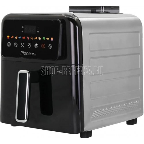 Аэрогриль с функцией приготовления на пару, полностью металлический корпус, верхний и нижний нагревательный элемент, электронное управление, цветной светодиодный дисплей, мощность: 2200 Вт, внутренний объем: 9,5 Л, антипригарное покрытие, смотровое окно , внутренняя подсветка, таймер: до 60 минут, регулируемая температура: 60 -200 градусов, ручная настройка режимов приготовления, 12 предустановленных программ приготовления:, резервуар для воды 250 мл