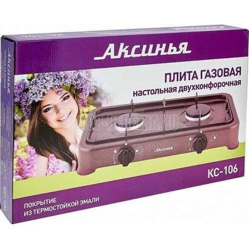 Номинальная тепловая мощность 2,2х2 кВт Номинальный расход газа 320 г/ч Номинальное давление используемого газа 3,0 кПа Вид сжиженного газа пропан/бутан Количество конфорок 2 конфорки Тип настольная Тип розжига ручной Максимальная нагрузка на конфорку 10 кг Описание Предназначена для приготовления и разогрева пищи в бытовых условиях, только с бытовыми газовыми баллонами Покрытие из термостойкой эмали Цвет эмали: бежевый Поворотный механический регулятор пламени конфорки Возможность присоединения газового шланга с двух сторон Прибор предназначен для работы только на сжиженном газе с бытовыми газовыми баллонами объемом 5 л, 12 л, 27 л или 50 л (в комплект поставки не входит) Подсоединение газовой плиты к газовому баллону должно осуществляться при помощи регулятора давления газа (редуктора), резинового шланга и хомута ВНИМАНИЕ Запрещено подключать баллон с газом напрямую к плите без регулятора давления газа (редуктора) Газовый шланг, регулятор давления газа