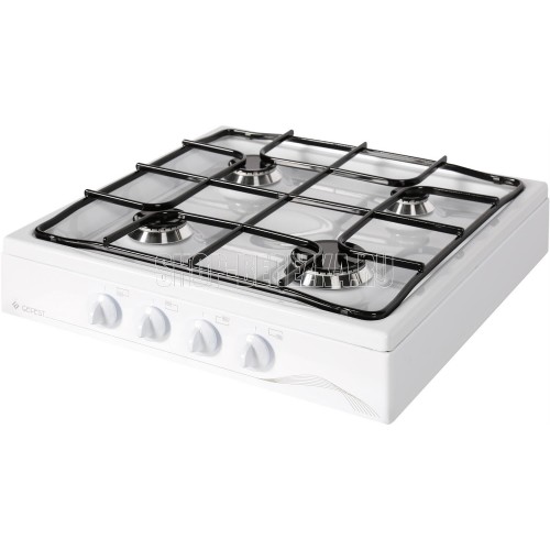 Габариты, ШхГхВ, см: 50х52х12.7; Цвет: белый; Ширина, см: 50; Фасад: эмалированный; Варочная поверхность: эмалированная; Решетки стола: стальные; Присоединительная резьба газопровода: G 1/2; Ножки регулировочные; Рабочая поверхность: газовая; Количество зон приготовления: 4; Мощность горелок стола, кВт: 1,7; Газ-контроль горелок стола; Комплектность: комплект сменных сопел, шланг присоединительный; Масса нетто, кг: 6,2