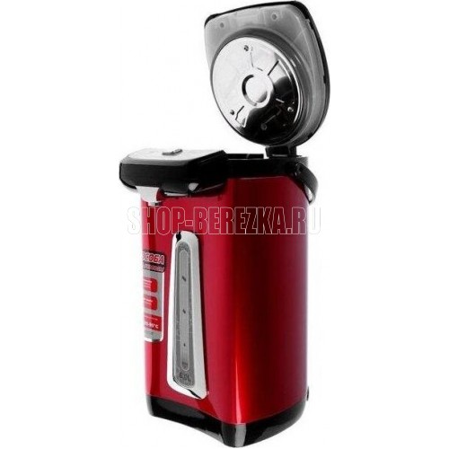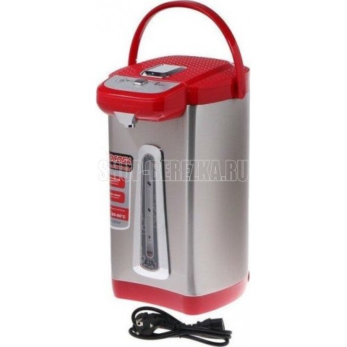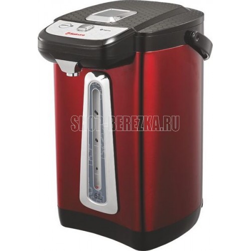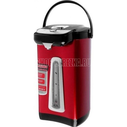 Чайник-термос с функцией кипячения и поддержания температуры на уровне 85-90 С, подача воды кнопкой на панели и нажатием чашки, подсветка шкалы, колба из нержавеющей стали. Световые индикаторы режима работы.Объем: 6,0 л/ Мощность: 750 Вт/