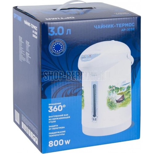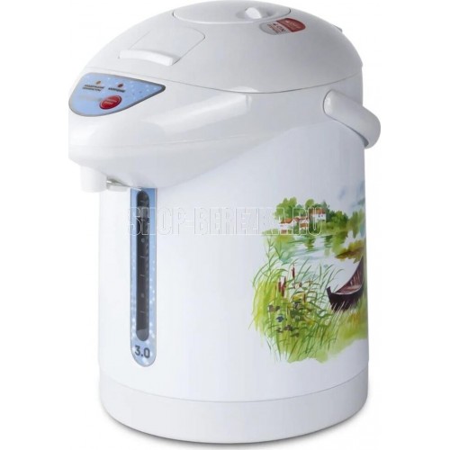 Объем (л): 3 л; Способ подачи воды: электронный насос ( кнопка на панели / кнопка под носиком ), воздушный насос ( ручная помпа ); Вес нетто (кг): 1,8; Защита от перегрева.Материал бака: нержавеющая сталь; Материал корпуса: металл, пластик; Мощность (Вт): 800 Вт; Напряжение (В): 230; Поворот базы на 360 градусов.