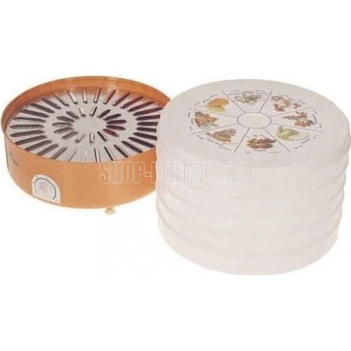 Сушилка для овощей и фруктов. 5реш складывающиеся (цветная упаковка). Мощность 520 Вт. Регулировка температуры от 20 до 70 °С. Особенность данной модели – складывающиеся решета. В зависимости от цели использования, при регулировании положений боковых рёбер, объём сушильной камеры может увеличиваться или уменьшаться. Рабочий объём сушильной камеры – 20 л., компактный объём – 12 л.