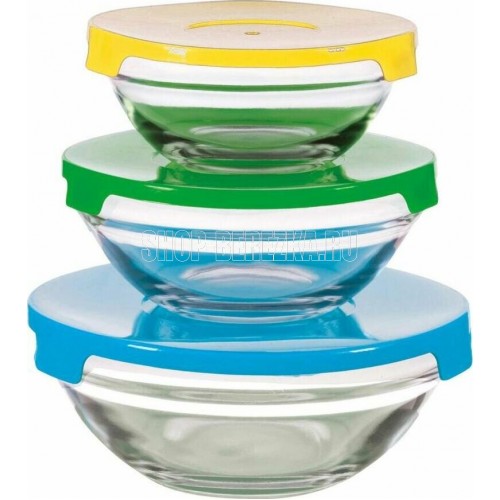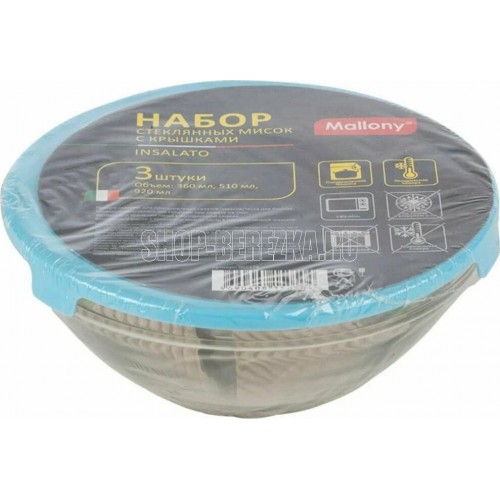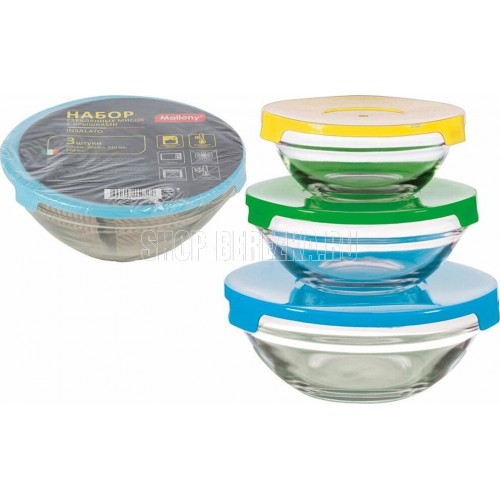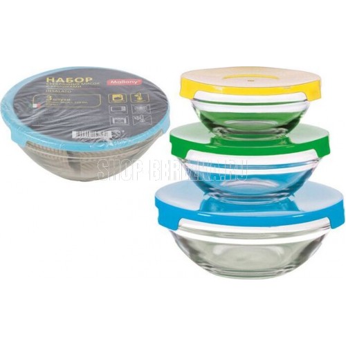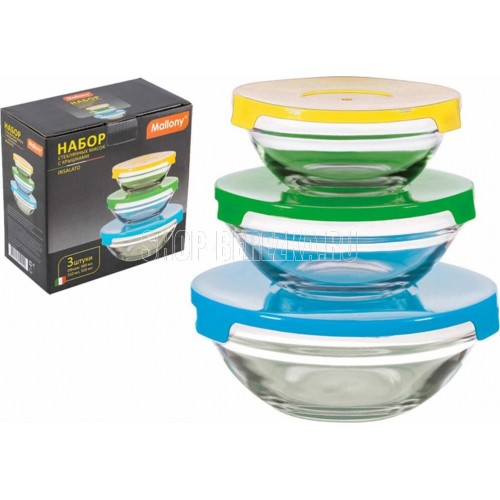 MALLONY Набор из 3 стеклянных мисок с крышками INSALATO (360/510/920мл) (007178)