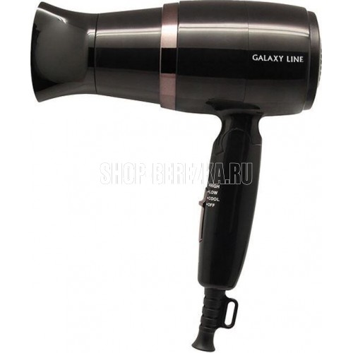 Galaxy LINE GL 4354 Фен для волос 1600 Вт, 220-240 В, 50 Гц, 2 скорости потока воздуха, холодный обдув, защита мотора от перегрева, насадка-концентратор, складная ручка