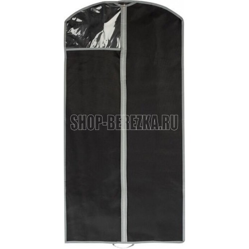 Материал/состав: спанбонд, плотность 50гр/квм, молния, пленка ПВХ; Размер: 120х60х1.2см; Индивидуальная упаковка: п/э пакет с европодвесом и цветным вкладышем; Цвет: черный с серым кантом Предохраняет Ваши вещи от загрязнения и преждевременного старения. Есть ручки для переноски, прозрачное окошко.