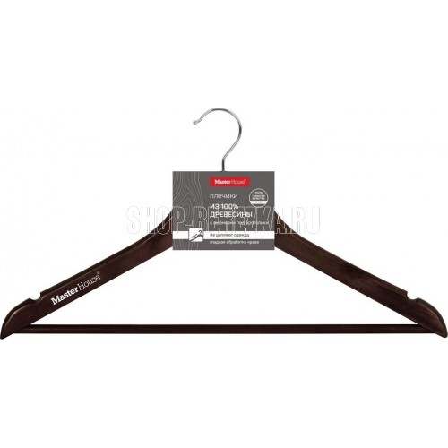 Плечики деревянные, цвет: коричневый матовый, материал: клен А класс, 44см, с перекладиной и выемками