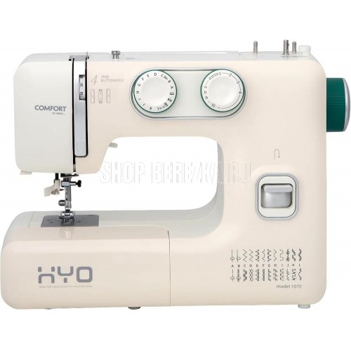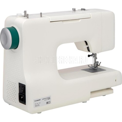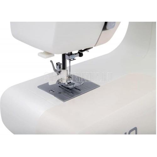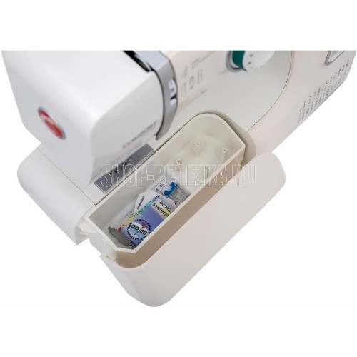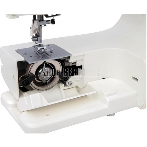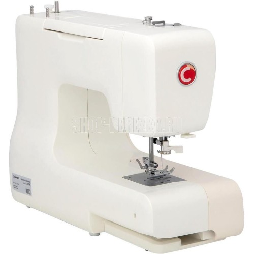 Электромеханическая, вертикальный челнок, 24 швейные операции, петля полуавтомат, мощность 100Вт. (полупромышленный двигатель), нитевдеватель, нитеобрезатель на корпусе, возможность шитья двойной иглой, отсек для аксессуаров.
