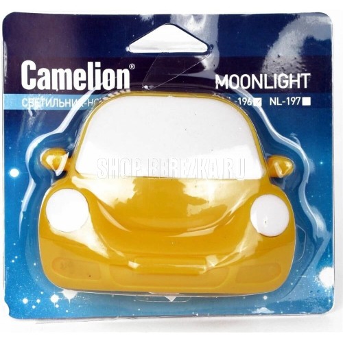 CAMELION NL-196 "Машинка" желтая (LED ночник с выкл, 220V) Вкл/выкл: Выключатель Мощность: 0,5 Вт Размеры: 95 x 75 x 80 мм Гарантия: 12 мес Источник света: Встроенные светодиоды Материал корпуса: Пластик