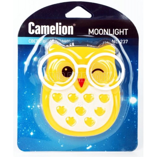 CAMELION NL-237 "Сова" (LED ночник с выкл, 220V) Вкл/выкл: Выключатель Мощность: 0,5 Вт Размеры: 80 x 75 x 80 мм Гарантия: 12 мес Материал корпуса: Пластик