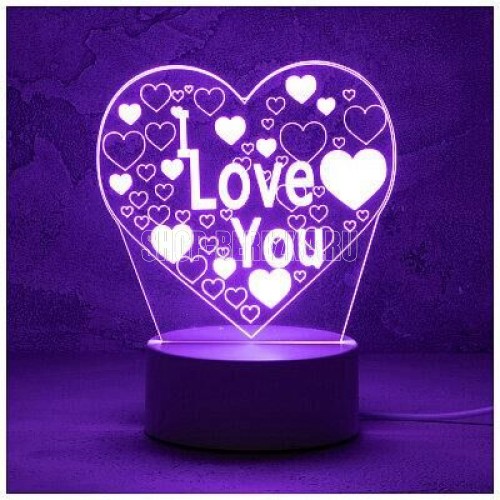 3D светильник-ночник Свет розовый Питание от USB (шнур 1 м в комплекте) БАЗА ПЛАСТИК 9,5*9,5*4см Размер светильника 17*14см Напряжение 5В Мощность 3 Вт