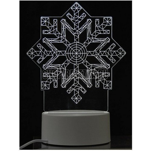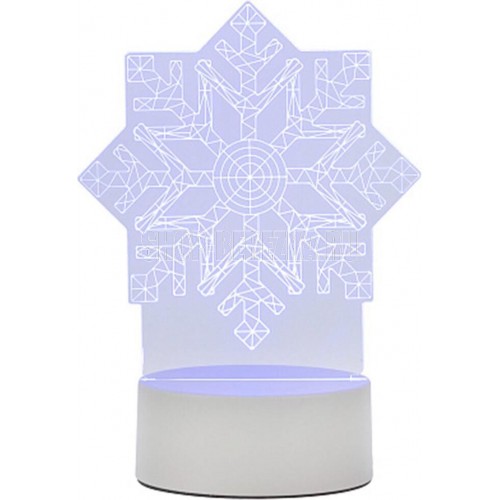 3D светильник-ночник декоративный Голубой свет Дизайн : Снежинка Питание от USB (шнур 1 м в комплекте) база пластик 9,5*9,5*4см Размер светильника 17*14см Напряжение 5 В Мощность 3 Вт Вес ; 180 грамм