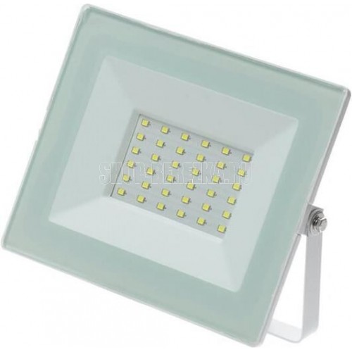 Светодиодный прожектор Ultraflash LFL-5001 C01 белый (LED SMD прожектор, 50 Вт, 230В, 6500К), размер 185*135*35 мм, источник света - встроенные светодиоды, мощность 50Вт, световой поток - 3500лм, металл + стекло.