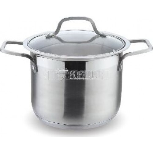 Объем 26л. Высокач. нерж. сталь. 5-слойное капсульное дно. Подходит для индукции. Стекл. жаропрочная крышка с паровыпуском диаметром 34 см. Удобные термостойкие клепаные ручки. Матовая внутри и снаружи. Мерная шкала внутри.
