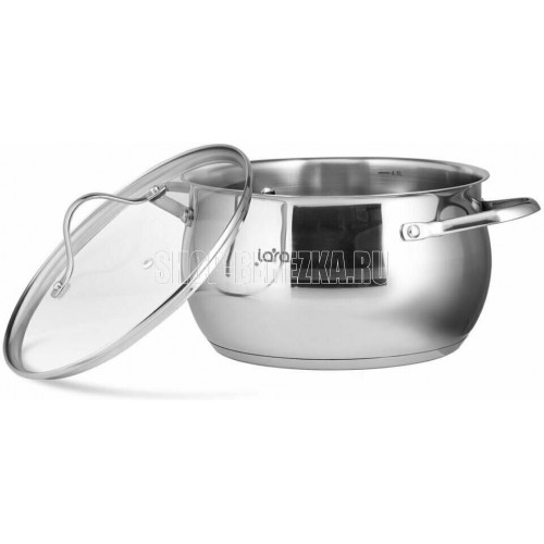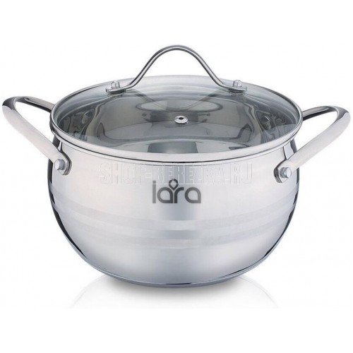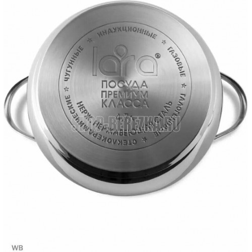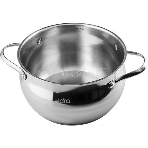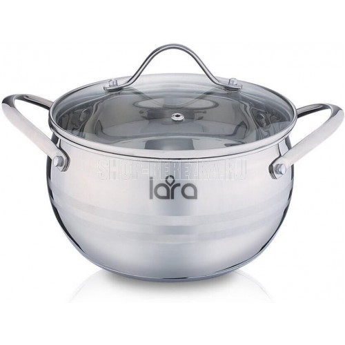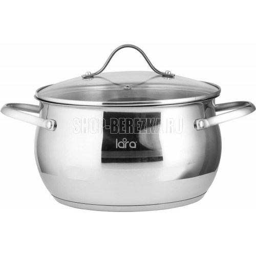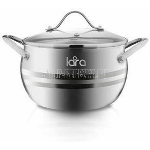 LR02-34 Кастрюля LARA (нерж) серия APPLE 22x12,5см,4.7л,стал.ручки,капсулир индукц дно,крышка стекло