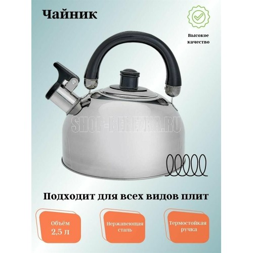 Объем 2,5 л.Высококачественная нержавеющая сталь.Зеркальная полировка. Индукционное дно.Подвижная ручка из термостойкого пластика.Цвет ручки: черный. Пригоден для использования на всех типах кухонных плит, включая индукционные