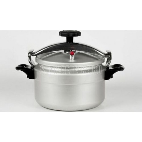 Объем 6,5л. Материал: алюминий, оксидированное покрытие. Клапан регулирующий давление. Возможность мыть в посудомоечной машине. Возможность использования на газовых плитах. Возможность использования на электрических плитах, кроме индукции и стеклокерамики. Комплектация: уплотнительное кольцо, струбцина+верхняя ручка. Особенности: предохранительный клапан. Цвет: серебристый металлик