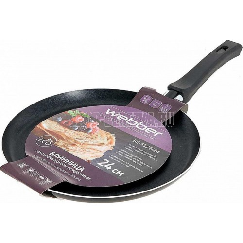 Диаметр 24 см. Блинница из алюминия с антипригарным покрытием. Высококачественное экологически чистое внутреннее антипригарное покрытие. Внешнее высокопрочное термостойкое покрытие. Спиральное дно гарантирует высокую эффективность приготовления. Термостойкая бакелитовая ручка с защитой от открытого пламени. Подходит для приготовления пищи с малым количеством масла. Может быть использована на электрических, газовых и стеклокерамических плитах.