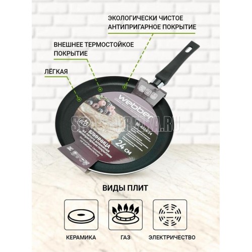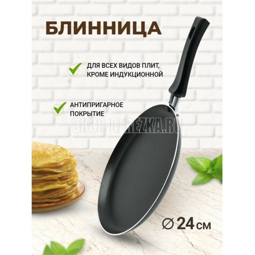 Тип сковорода блинная Материал алюминий Антипригарное покрытие есть Совместимость с индукционными пл..