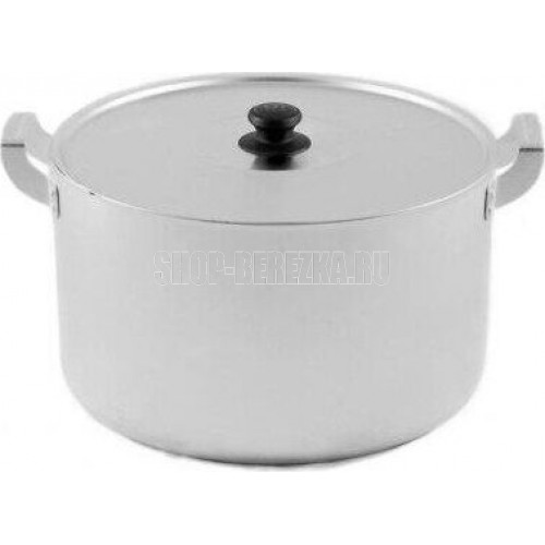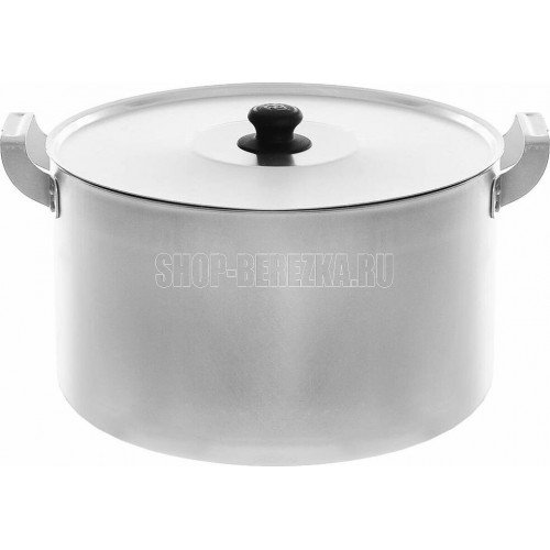 Кастрюля с металлической крышкой и двумя металлическими ручками на 15 литров изготовлена из чистого пищевого алюминия методом штамповки. Основные характеристики такой посуды: легкость, прочность, быстрый нагрев, безопасность и доступность. Кастрюля подходит к использованию на электрической, керамической, газовой плите, легко моется и имеет неограниченный срок службы.