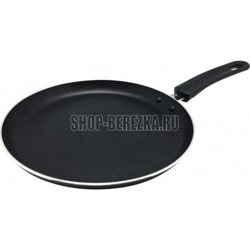 Сковорода блинная из штампованного алюминия, диаметр 22см. Толщина дна 3мм. Внешний диаметр дна 18,8 см. Подходит для всех типов плит. Бакелитовая ручка не нагревается при использовании конфорки или газовой горелки, не превышающей диаметр дна сковороды.