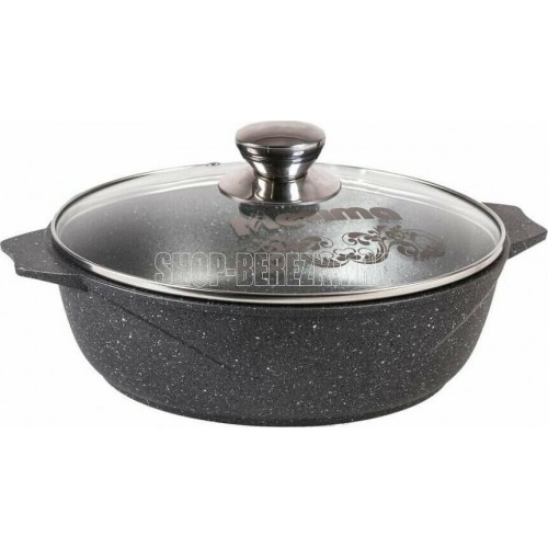 Жаровня 2.4л (24см) с антипригарным покрытием и стеклянной крышкой серии "Гранит" Подходит для всех типов плит, кроме индукционных. Можно использовать в посудомоечной машине. Можно использовать в духовке отдельно без крышки.