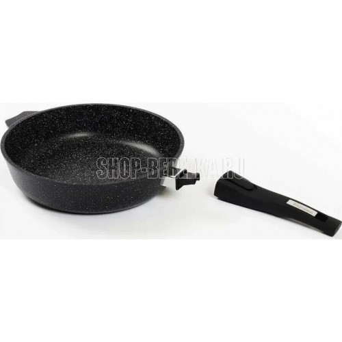 Сковорода 18 см с антипригарным покрынием и съемной ручкой серии "Гранит star" Подходит для всех типов плит, кроме индукционных. Можно использовать в посудомоечной машине. Можно использовать в духовке отдельно без ручки.