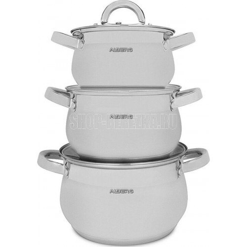 Набор кастрюль состоит из 6 предметов: 3 кастрюли, 3 крышки Кастрюля 2.0 л (O16 х 10.5 см) Кастрюля 3.0 л (O18 х 11.5 см) Кастрюля 4.0 л (O20 х 12.5 см) Мерная шкала в каждой кастрюле Толщина стенки 0.5 мм Высококачественная нержавеющая сталь Многослойное термоаккумулирующее капсулированное индукционное дно Крышки из жаропрочного стекла с отверстием для выхода пара Подходит для всех видов плит, включая индукционные Нельзя использовать в духовом шкафу Подходит для мойки в посудомоечной машине