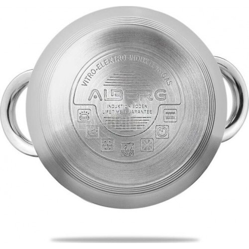 Кастрюля с крышкой в индивидуальной цветной упаковке 8 л (O26 х 15 см) Мерная шкала Толщина стенки 0,5 мм Высококачественная нержавеющая сталь 7-ми слойное капсульное индукционное дно Крышки из жаропрочного стекла с отверстием для выхода пара Подходит для всех видов плит, включая индукционные Нельзя использовать в духовом шкафу Подходит для мойки в посудомоечной машине