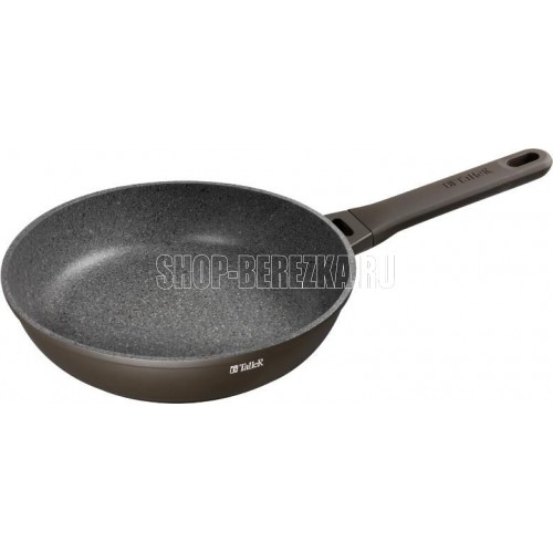 Литой алюминий. Покрытие: Двухслойное антипригарное WISTONE с эффектом гранитной крошки, не содержит PFOA, выдерживает до 14 000 циклов на истирание. Размер: Диаметр 26 см, внешний диаметр дна – 20,6 см, Высота борта 6 см Толщина дна 4,3 мм, Толщина стенки 2 мм Максимальная температура использования 220 ? C Бакелитовая ручка с покрытием Soft touch не нагревается при использовании конфорки или газовой горелки, не превышающей диаметр дна сковороды. Подходит для всех типов плит, включая индукционные. Индукционное дно обеспечивает равномерный нагрев. Рекомендации в приготовлении: возможно готовить с минимальным количеством масла, или добавить немного воды Уход за изделием: Всегда давайте посуде остыть перед погружением в воду. Рекомендована ручная мойка. Для продления срока службы сковороды рекомендуется использование лопаток, которые не повреждают поверхность, таких как нейлон, силикон или дерево.